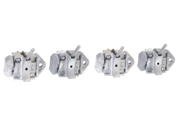 The set of 4 double ended twist locks are used when stacking containers to lock the top and bottom stack together. Built from high quality cast steel and galvanised to prevent rust they are operated manually using a lever
